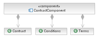 In the case of our legal contract we choose to introduce a component that will own the elements, as shown in the figure