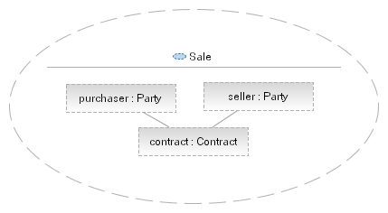 a Collaboration Occurance which binds the roles "purchaser" and "seller" to actual model elements.